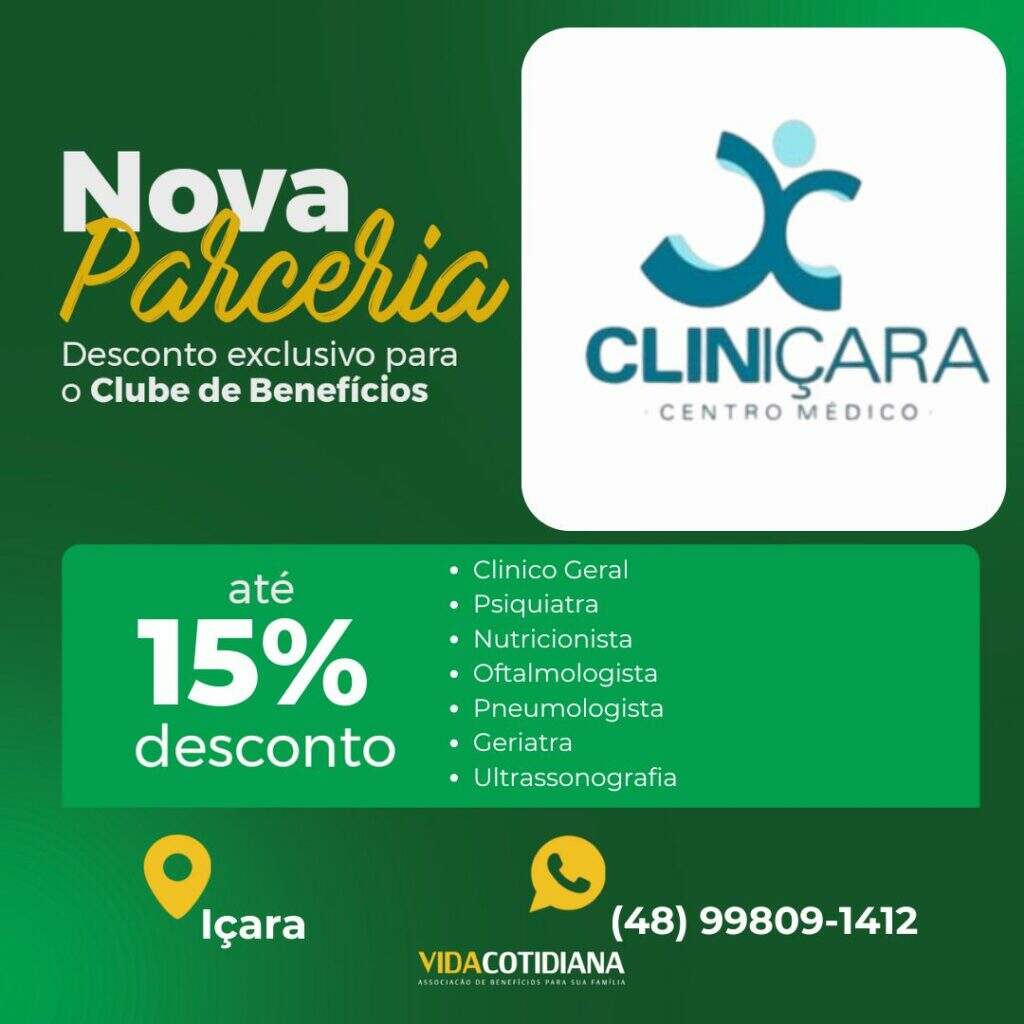 Mais uma novidade para você associado! Agora, você e seus dependentes tem a oportunidade de aproveitar descontos de até 15% com Cliniçara Centro Médico em Içara . Contato:(48) 99809-1412 Atuando nos seguimentos: Clinico Geral Psiquiatra Nutricionista Oftalmologista Pneumologista Geriatra Ultrassonografia Estamos constantemente expandindo nossa lista de parceiros para garantir que você tenha cada vez mais […]