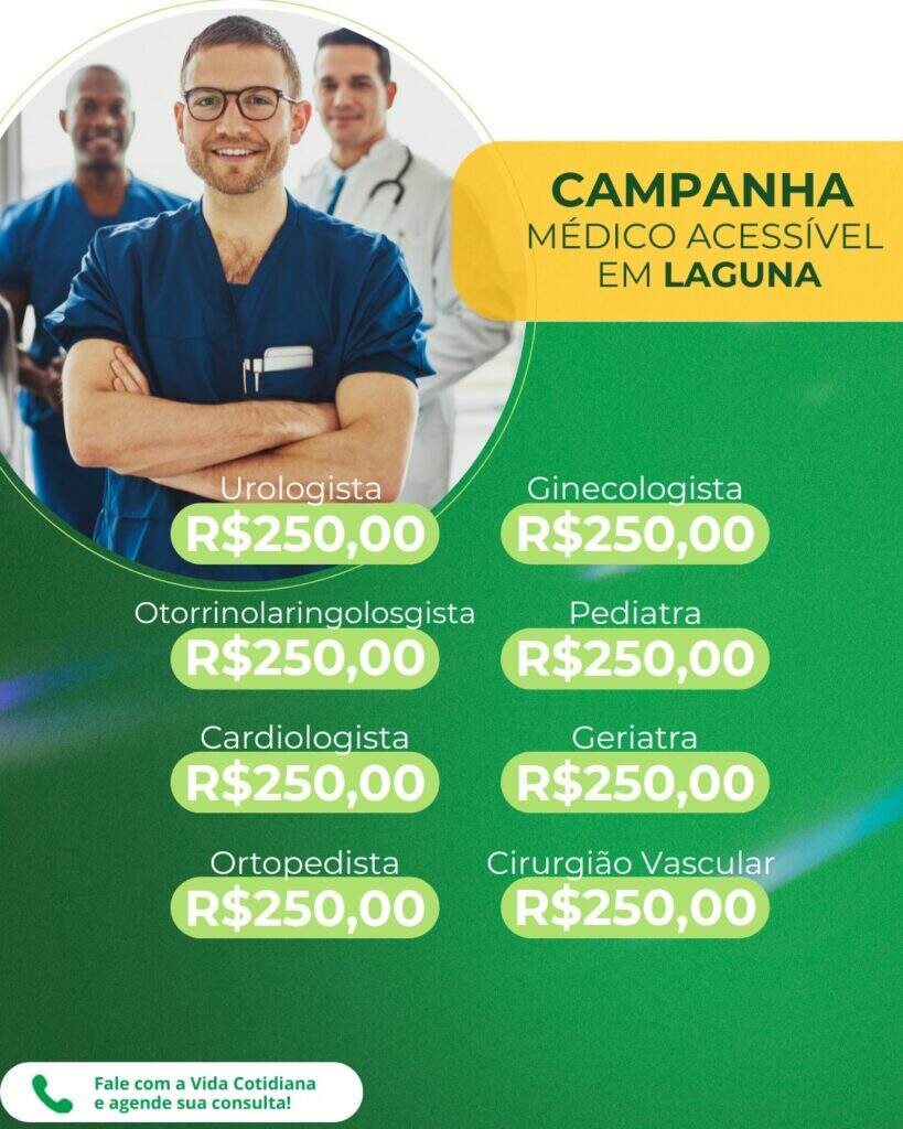 Campanha Médico Acessível Vida Cotidiana Consultas a partir de R$250,00 em diversas especialidades! Essa é uma oportunidade única para promover saúde com qualidade e preço acessível para quem mais precisa. 🗓 Conforme disponibilidade de agenda. ✅ Confira algumas especialidades disponíveis: Cardiologista: R$ 250,00 Ginecologista: R$ 250,00 Pediatra: R$ 250,00 Geriatra: R$ 250,00 Cirurgião Vascular: R$ […]