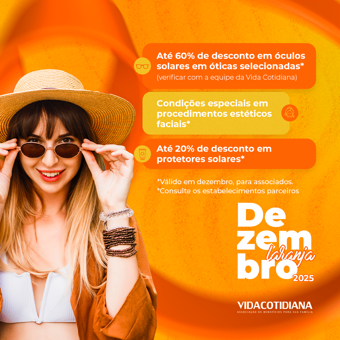 No mês oficial de prevenção ao câncer de pele, uma campanha que reforça a importância da proteção diária, do uso do protetor solar e da atenção aos sinais que o corpo nos dá, a Vida Cotidiana preparou benefícios exclusivos para associados ao longo de todo o mês, porque quando o cuidado é acessível, fica mais fácil manter a saúde em dia.