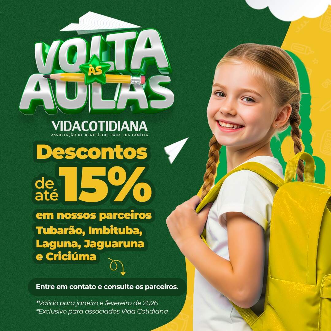 #VidaCotidiana #VoltaÀsAulas #DescontosEspeciais #Desconto #VidaCotidiana #SaúdeEBemEstar #Economize #MateriaisEscolares #Uniformes #Parceiros #Promoções #VoltaÀsAulas2026 #Criciúma #Tubarão #Laguna #Imbituba #Jaguaruna #Descontos