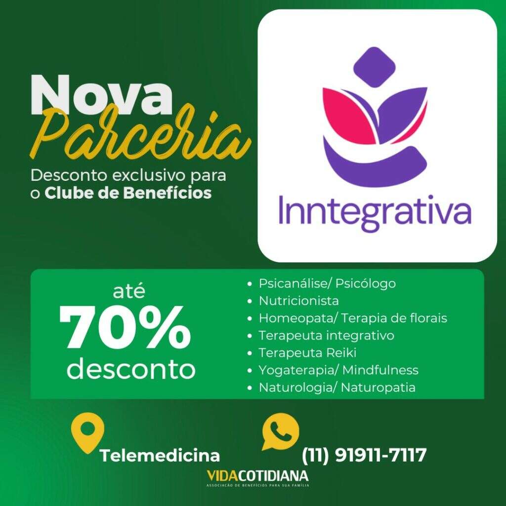 Mais uma novidade para você associado! Agora, você e seus dependentes tem a oportunidade de aproveitar descontos de até 70% com Inntegrativa Serviços de Telessaúde | Tele Medicina – On-line. Contato: (11) 91911-7117 Atuando nos seguimentos: Psicanálise Yogaterapia Meditação Homeopata Naturopata Floralterapeuta Terapeuta integrativo Terapeuta reiki Fitoterapeuta Terapia Comunitária Integrativa Terapeuta ayurveda Terapeuta antroposófico Apiterapeuta […]