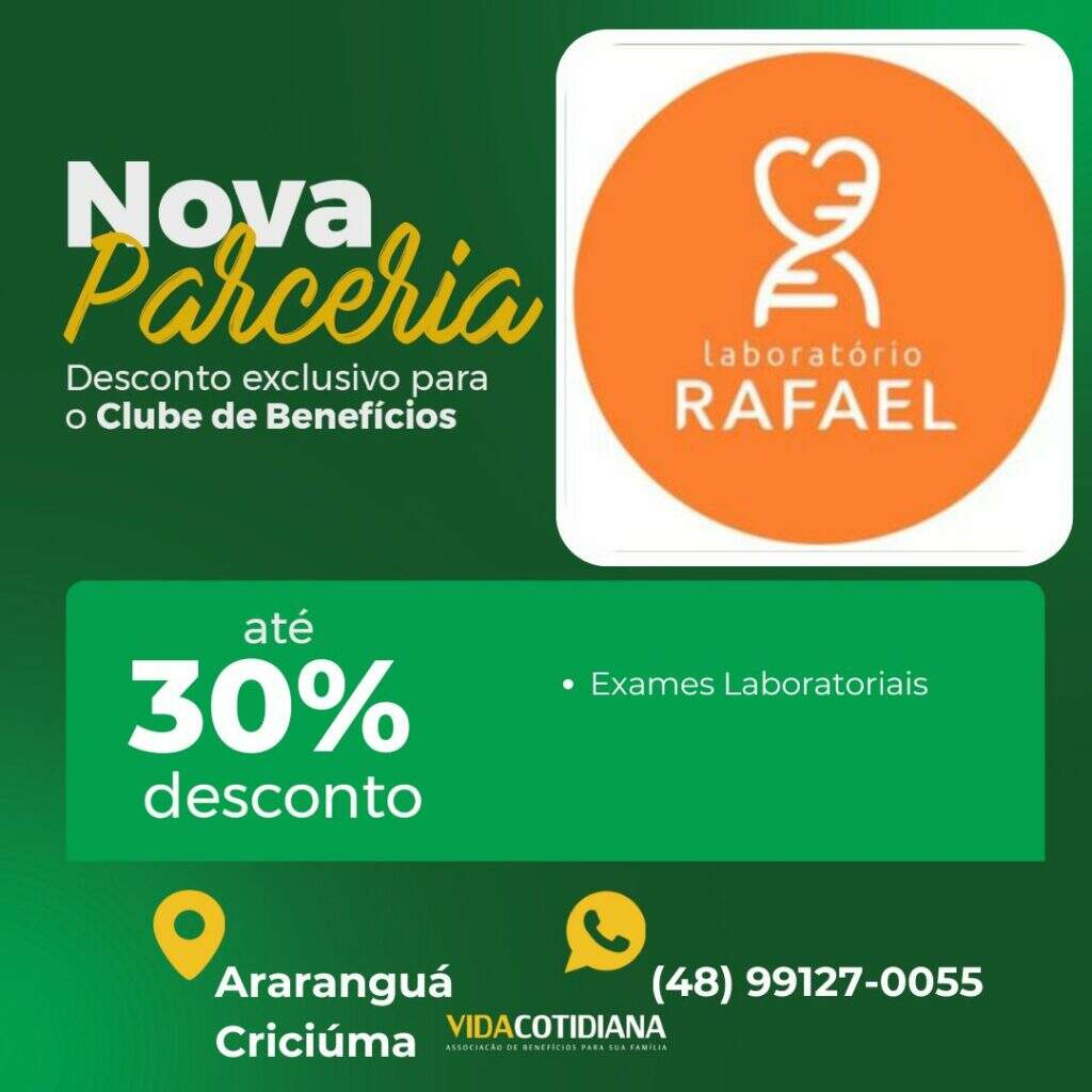 Mais uma novidade para você associado! Agora, você e seus dependentes tem a oportunidade de aproveitar descontos de até 30% em exames laboratoriais nas unidades do Laboratório Rafael. Contato: (48) 99127-0055 Cidades: Araranguá e Criciúma Estamos constantemente expandindo nossa lista de parceiros para garantir que você tenha cada vez mais vantagens como membro da Vida […]