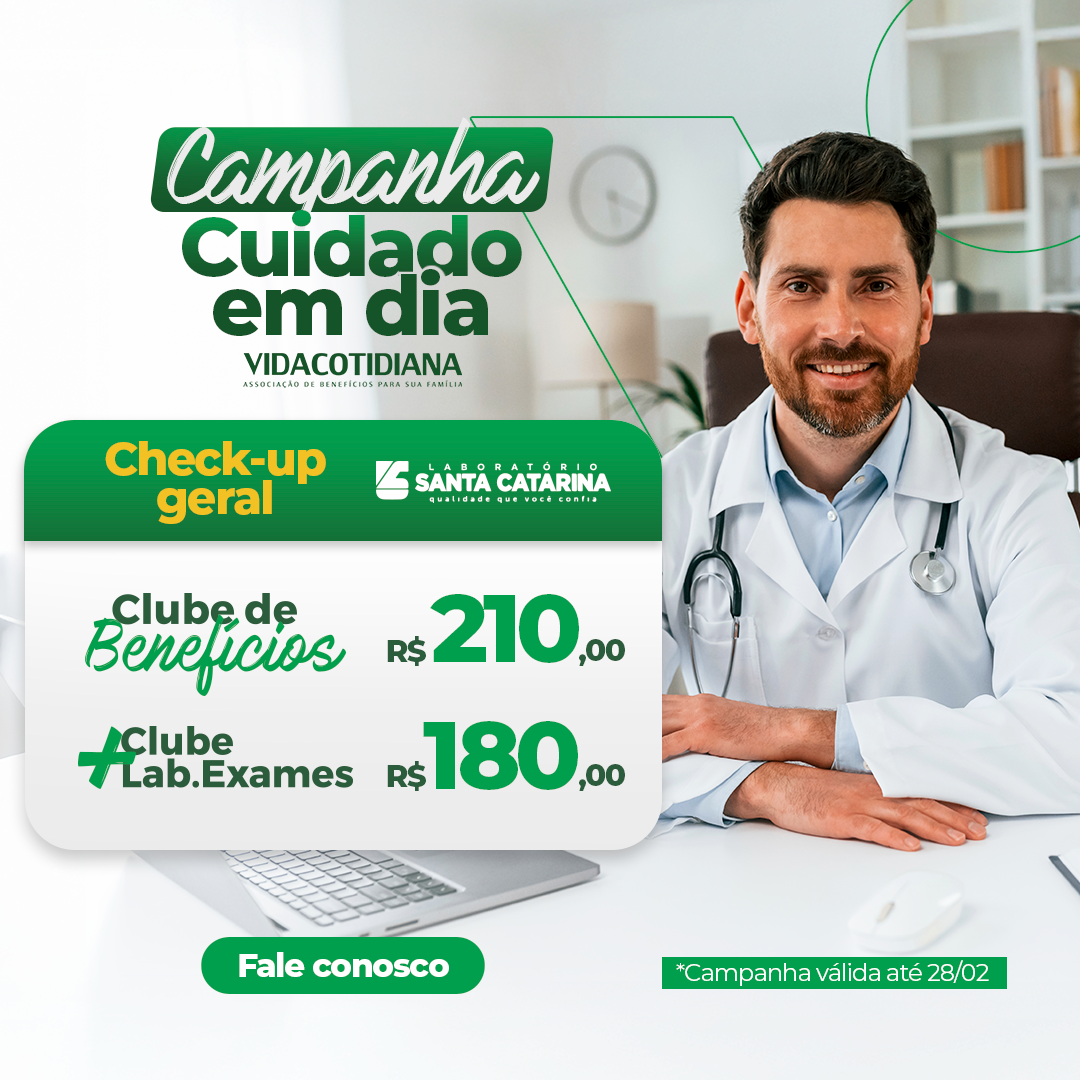 Em fevereiro, a Vida Cotidiana te incentiva a colocar o check-up laboratorial em dia, com valores exclusivos para associados.