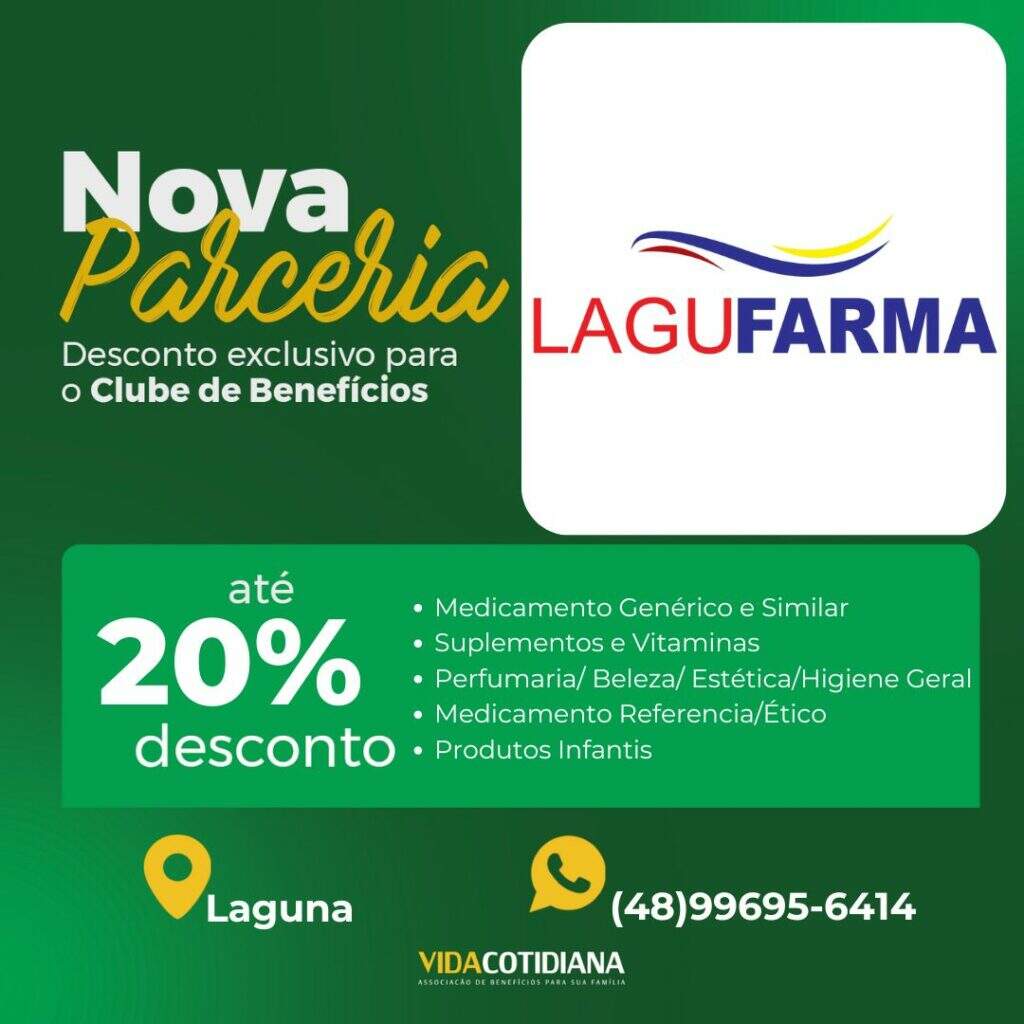 Mais uma novidade para você associado! Agora, você e seus dependentes tem a oportunidade de aproveitar descontos de até até 20% na Farmácia Lagufarma, com Medicamentos Genéricos, Similares, Referencia/Ético, Suplementos, Vitaminas, Perfumaria/ Beleza/ Estética/Higiene Geral e Produtos Infantis (Fraldas e Acessórios). Contato: (48) 99695-6414 Estamos constantemente expandindo nossa lista de parceiros para garantir que você tenha cada vez mais vantagens como […]