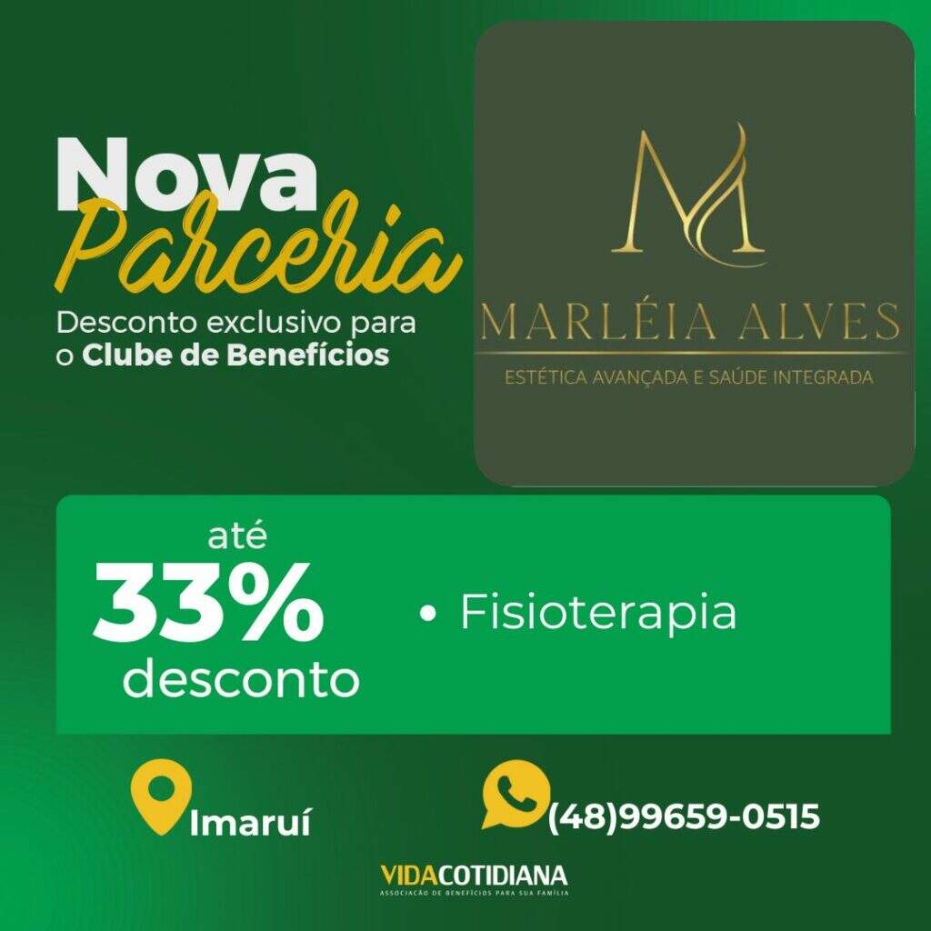 Mais uma novidade para você associado! Agora, você e seus dependentes tem a oportunidade de aproveitar descontos de até 33 % com a Marléia Alves – Estética Avançada e Saúde Integrada em Fisioterapia. Contato: (48)99659-0515 Estamos constantemente expandindo nossa lista de parceiros para garantir que você tenha cada vez mais vantagens como membro da Vida […]