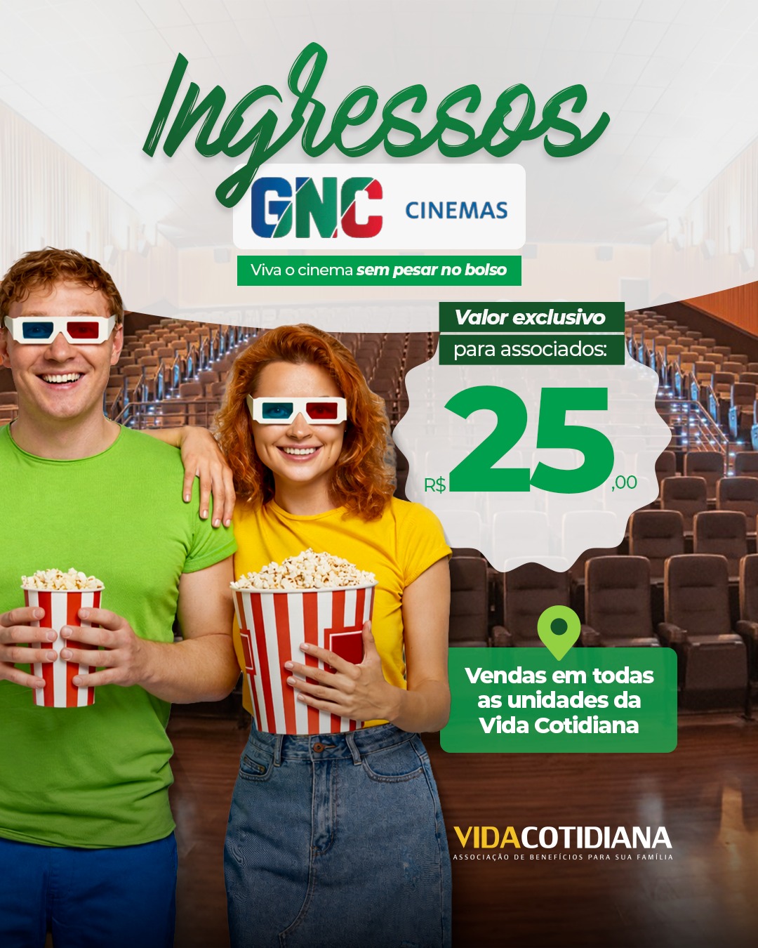Associado Vida Cotidiana garante ingresso GNC por apenas R$ 25,00.