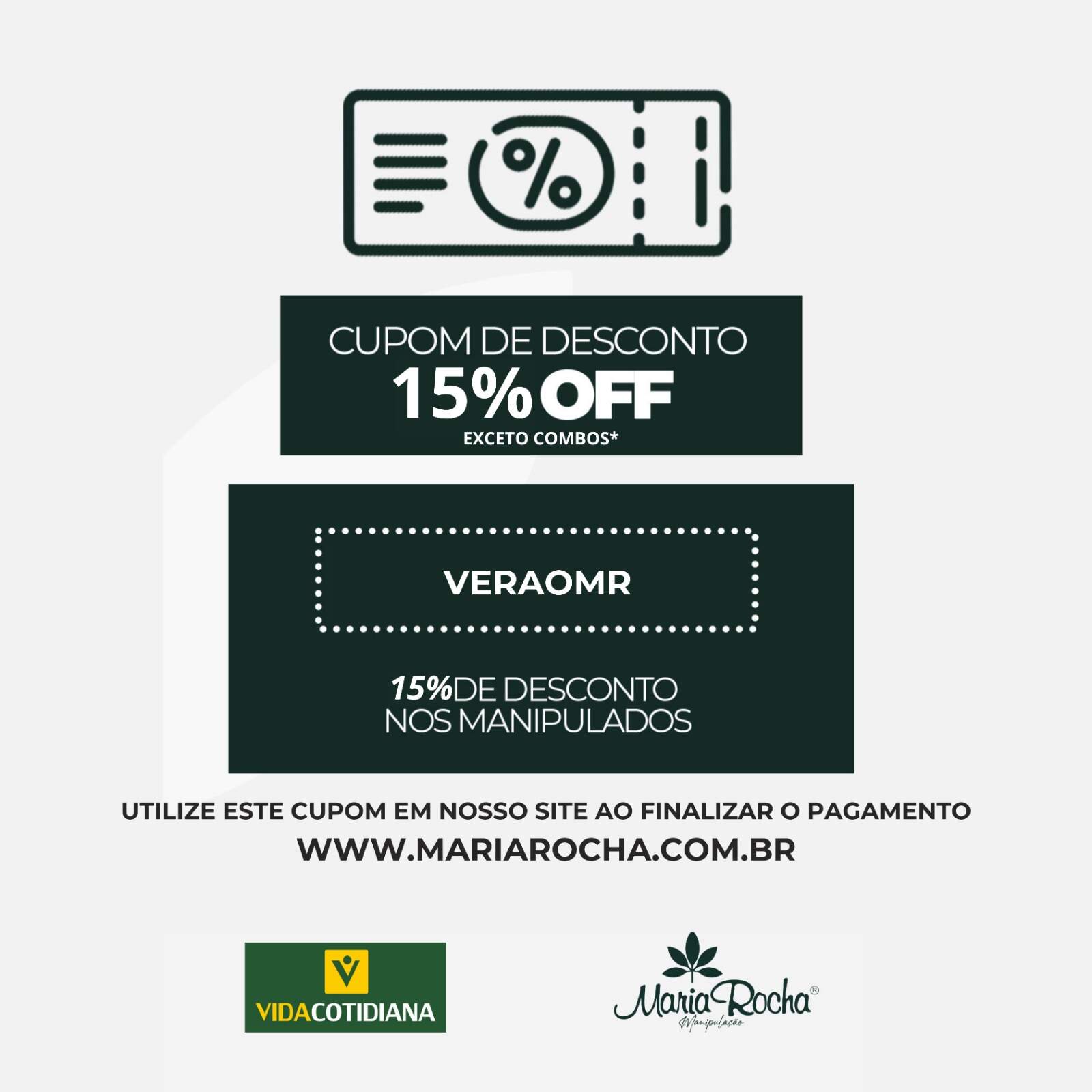 🧡 Na Maria Rocha Manipulados, vocês têm 15% de desconto nos manipulados e na linha solar usando o voucher acima para compras no site https://www.mariarocha.com.br/.