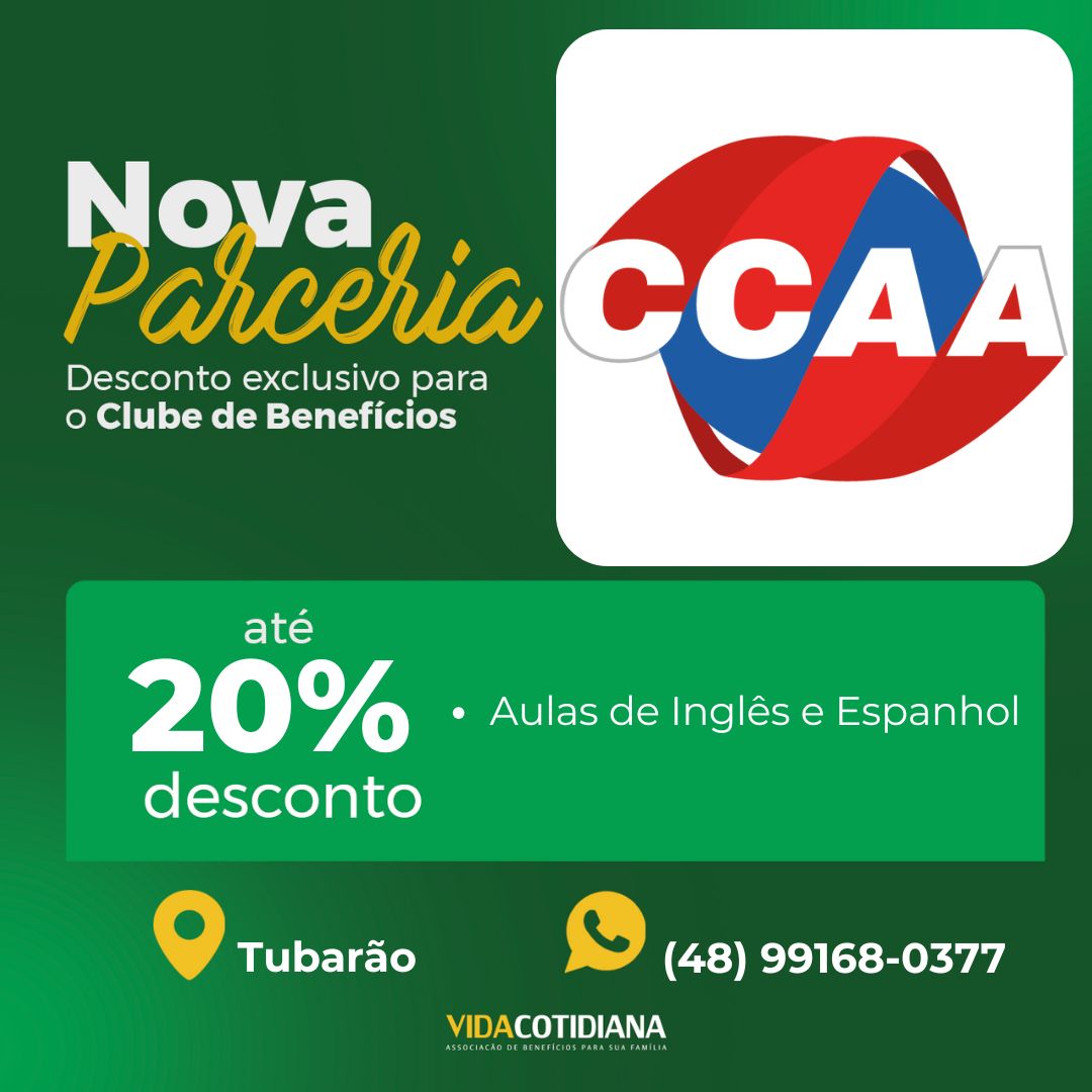 Você, associado, agora tem a oportunidade de aproveitar descontos de 20% nos Cursos de Inglês e Espanhol na CCAA Escola de Idiomas em Tubarão.
