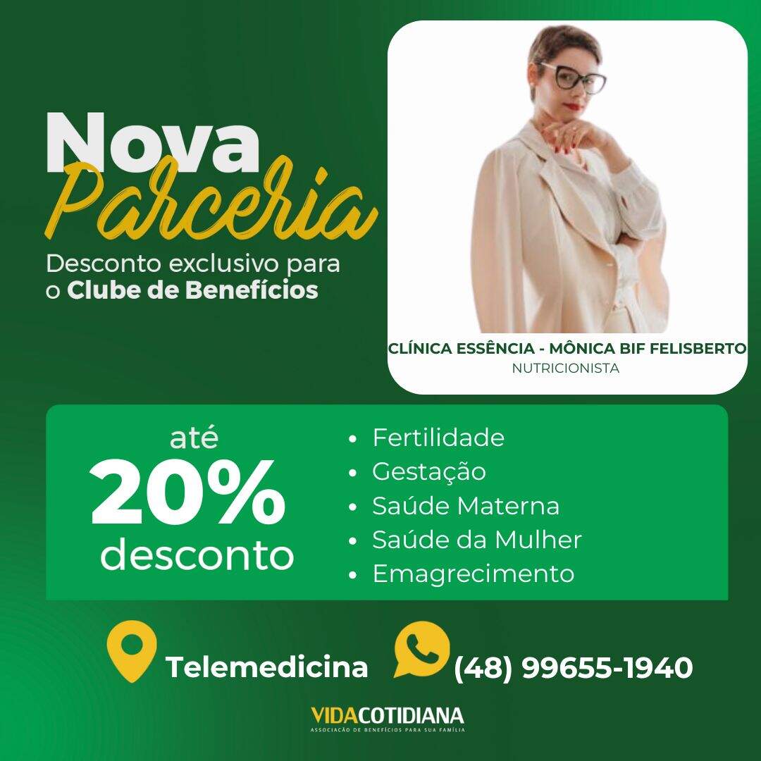 Agora, você e seus dependentes tem a oportunidade de aproveitar descontos de até 20% com Clínica Essência – Mônica Bif Felisberto com atendimentos on-line.