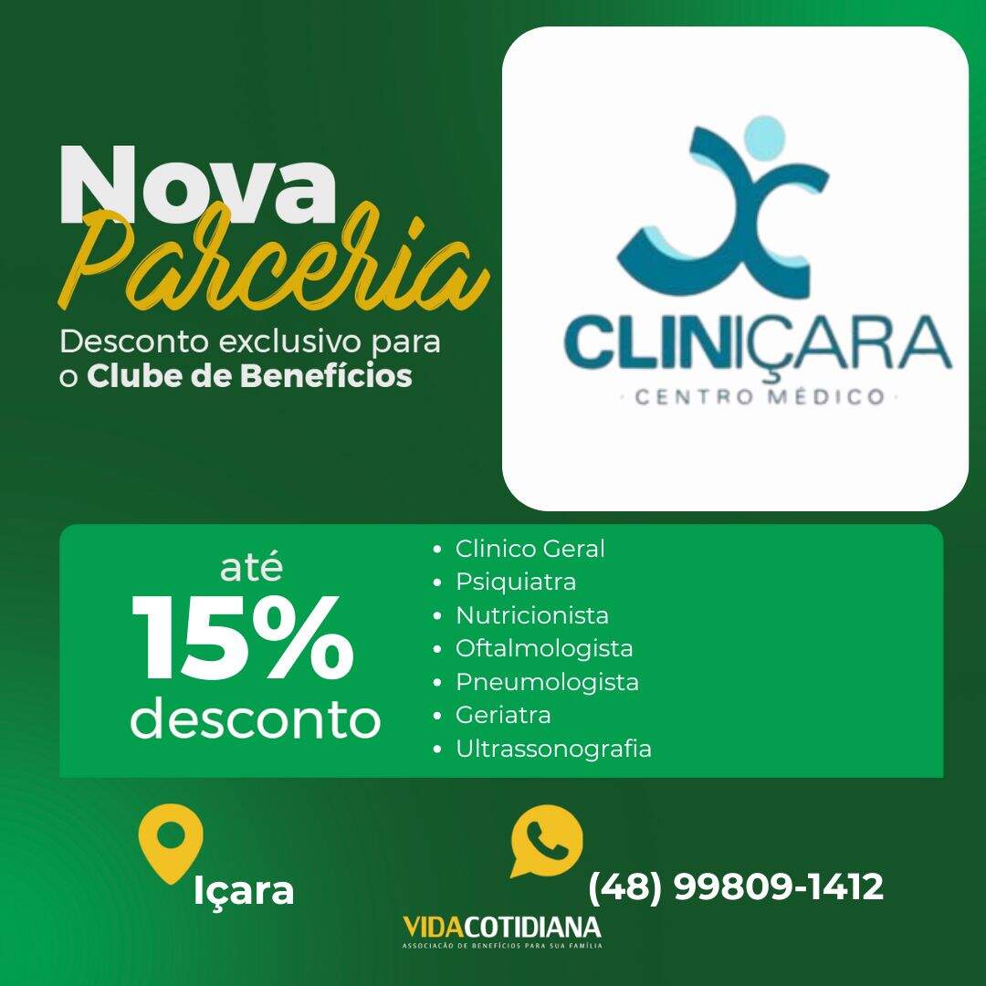 Agora, você e seus dependentes tem a oportunidade de aproveitar descontos de até 15% com Cliniçara Centro Médico em Içara .