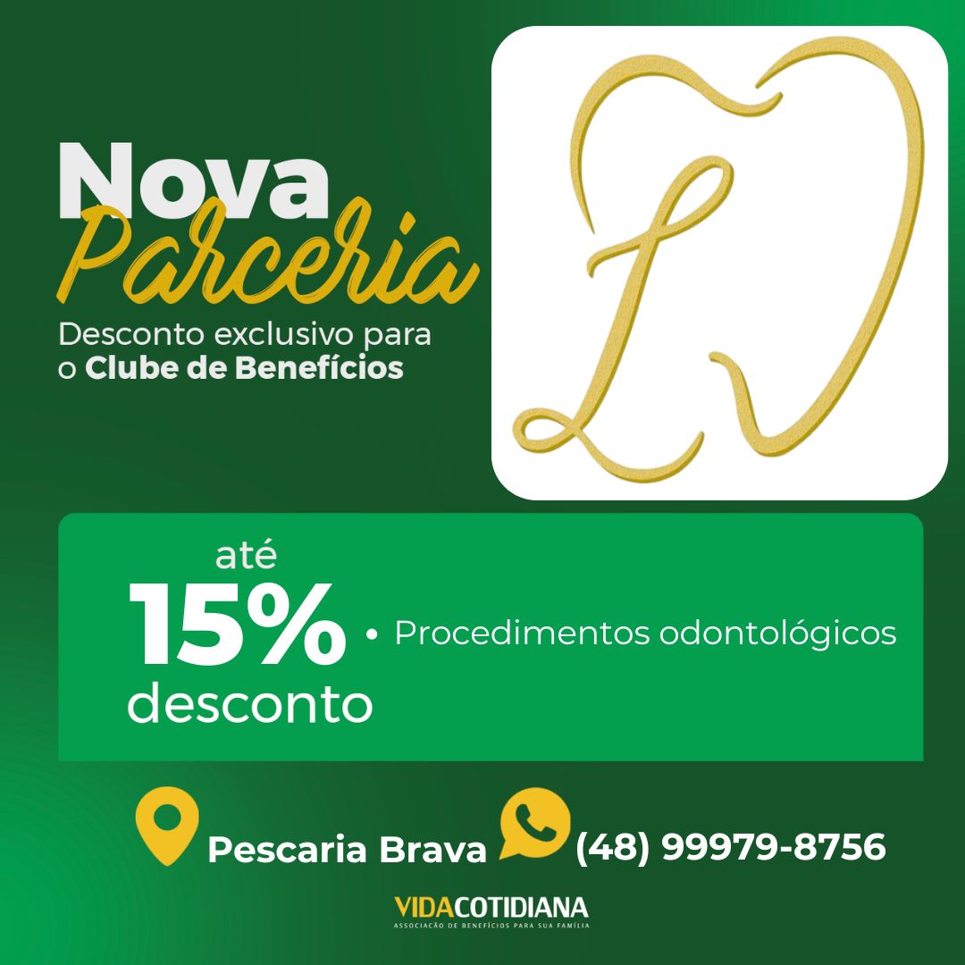 Agora, você e seus dependentes tem a oportunidade de aproveitar descontos de até 15% com Consultório Odontológico Drª Larissa Rita de Souza em Pescaria Brava.