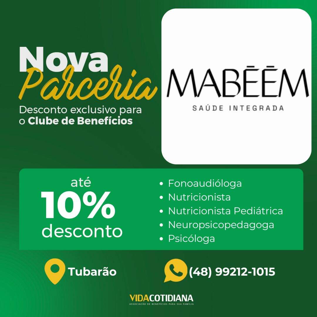 Agora, você e seus dependentes tem a oportunidade de aproveitar descontos de até 10% com a Mabeem Saúde integrada, em Tubarão.