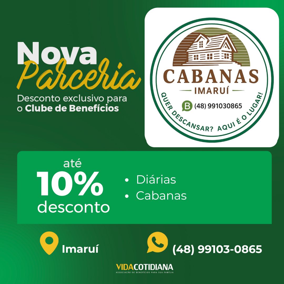 Agora, você e seus dependentes tem a oportunidade de aproveitar descontos de até 10% com Pousada Cabanas Imaruí em Imaruí.