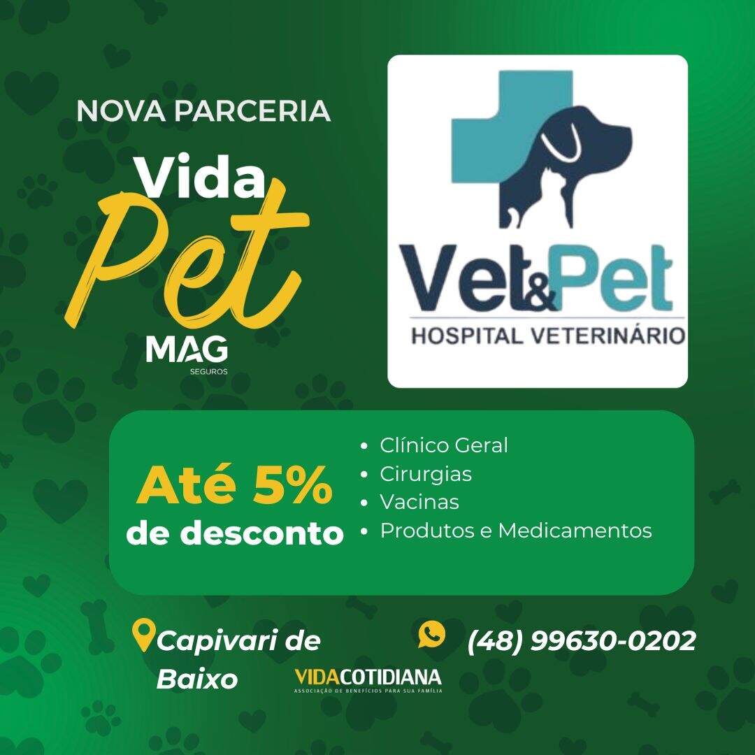 Agora, seus Pets tem a oportunidade de aproveitar descontos exclusivos de até 5% com a Vet&Pet Hospital Veterinário.